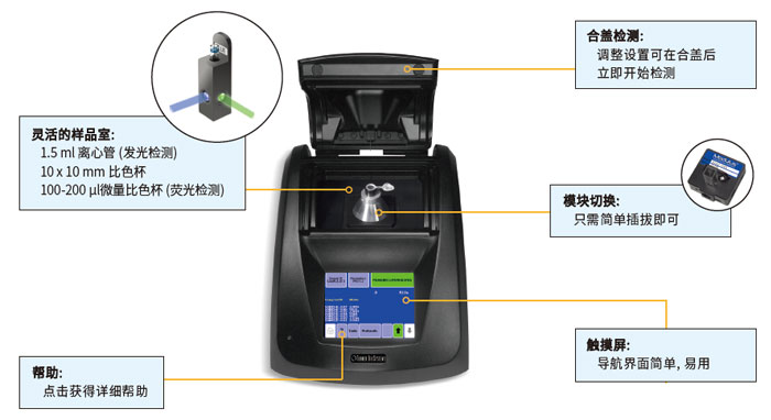 Modulus™ 是一款集生物与化学发光检测、荧光检测、 光吸收检测于一体的多功能检测仪。其采用模块化设计, 可根据实验的需求, 选用相应的检测模块, 来完成生物与化学发光检测、荧光检测和光吸收检测。