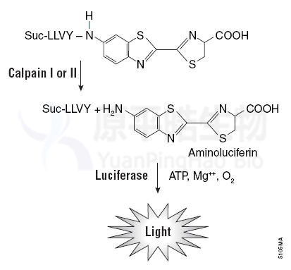 将Calpain的酶促反应与荧光素酶反应相偶联,可以通过荧光素酶的发光反应来检测Calpain的活性,从而进行Calpain酶活测定或Calpain抑制剂筛选。