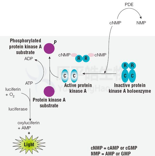 磷酸二酯酶可以调节cAMP(cGMP),而cAMP(cGMP)影响蛋白激酶的磷酸化作用,而蛋白磷酸化需要消耗ATP。通过这样一系列酶促反应,通过ATP的残留量可以反应PDEs的活性。