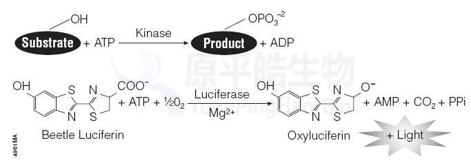 激酶在细胞的生命过程中起着至关重要的作用,其功能异常会导致包括肿瘤在内的许多重大疾病的发生,激酶活性的测定对许多研究显得尤为重要。在激酶反应中,激酶将底物磷酸化,同时消耗ATP,通过检测残留ATP即可反应出激酶活性。使用同样的原理,通过检测残留ATP,也可用于检测cAMP、磷酸二酯酶(PDEs)。