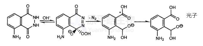 鲁米诺(luminol)是*常用的化学发光试剂之一。在碱性溶液(pH=10~11)中加入适当的氧化剂或者催化剂,如H202、K2S208、NaClO、Fe(II)盐、Mn(II)盐、Cu(II)氨配合物离子、K3Fe(CN)6、过渡金属离子、辣根过氧化物酶、微过氧化物酶等,可以*大地提高化学发光强度。鲁米诺的*大发射波长位于420nm到450nm之间,其发光反应会在开始的数秒内达到*大峰值又迅速衰减。